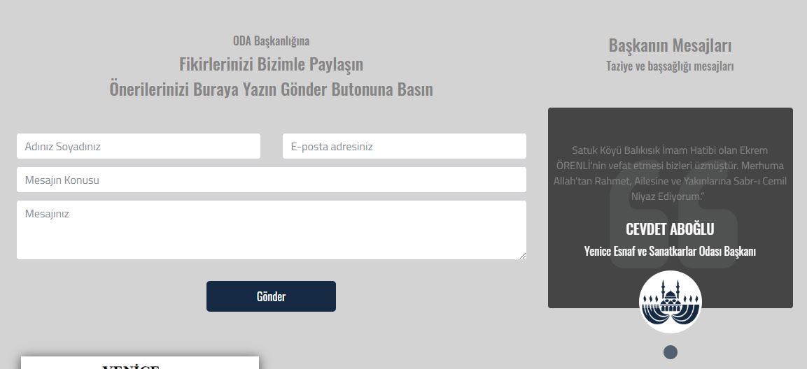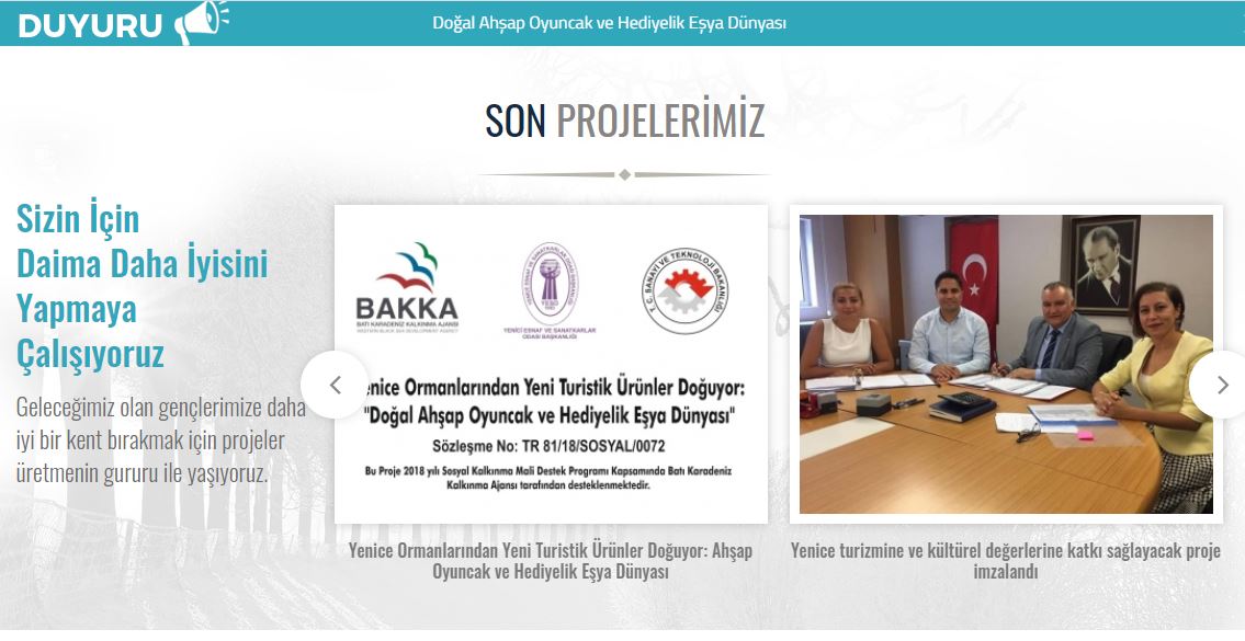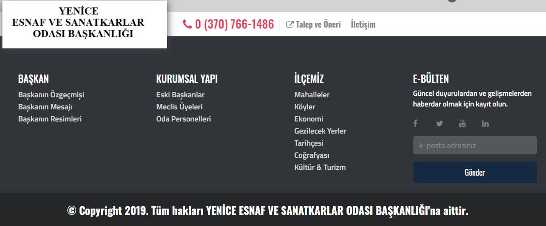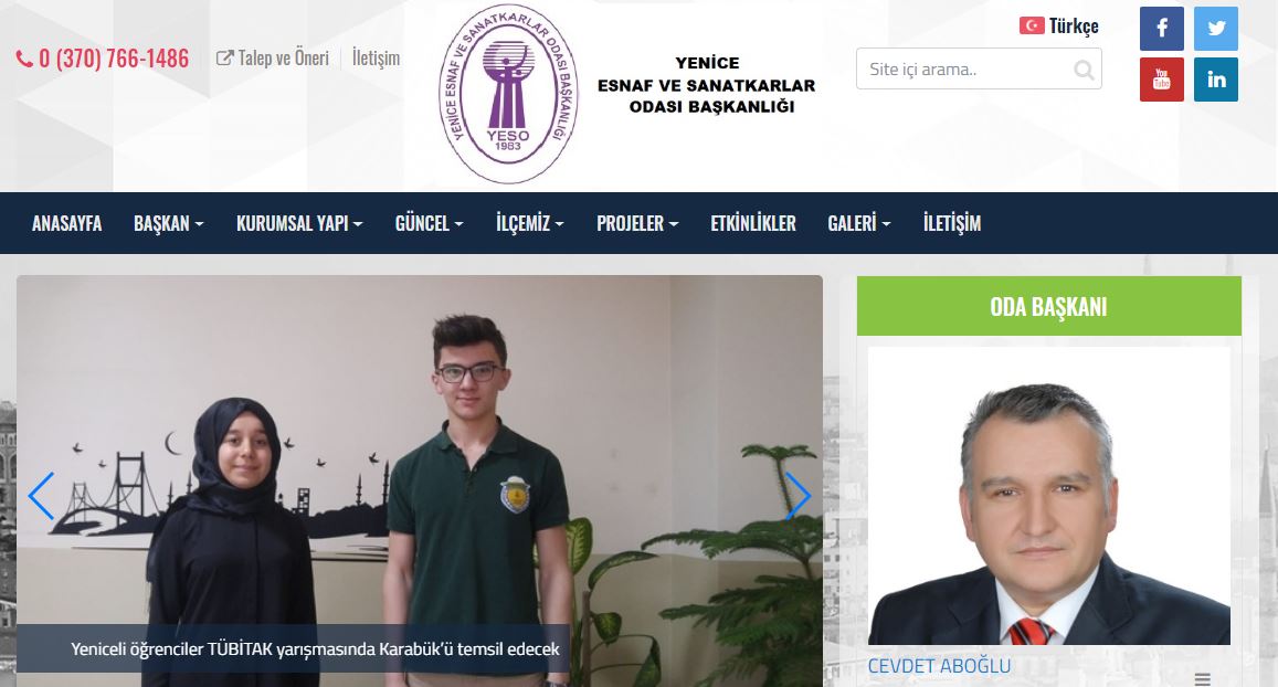 Yenice Esnaf ve Sanatkarlar Odası Başkanlığı'na özel web site tasarımı yapılmıştır.